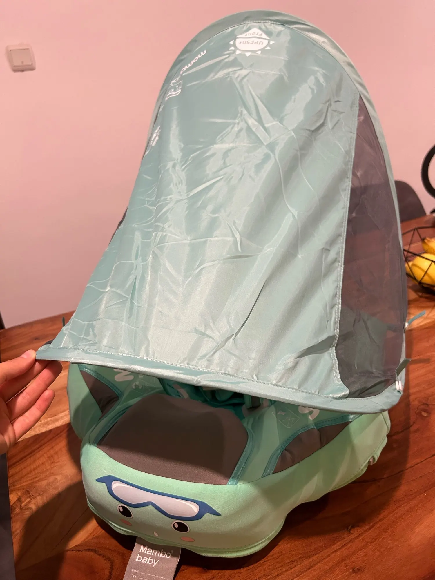 Der Schwimmreifen besteht aus hochwertigem Pearl-Foam, einem langlebigen Material, das feuchtigkeitsbeständig, atmungsaktiv und leicht ist. Dank des abnehmbaren Verdecks mit UPF 50+ UV-Sonnenschutz ist Ihr Baby optimal vor der Sonne geschützt.